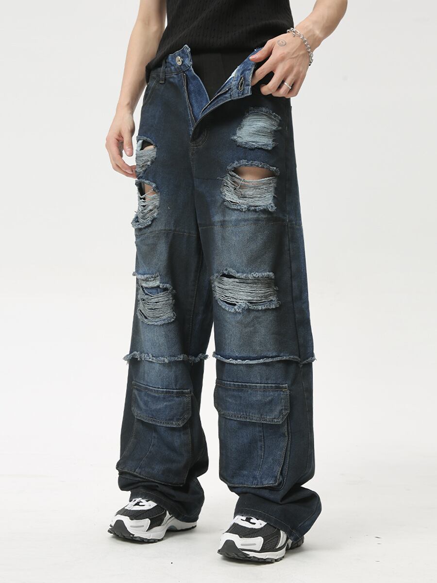 ジーンズ ストレートファッション欧米風 ファッション ダメージ