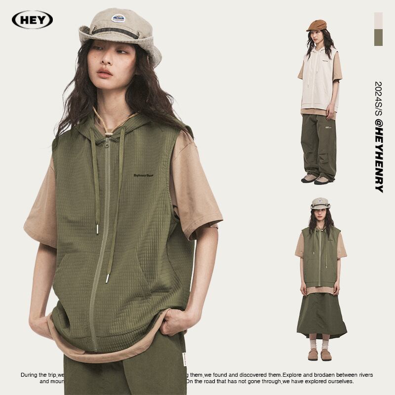 カジュアル ベスト レイヤード 男女通用 ペアルック連帽 ヴィンテージ