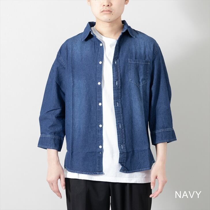 7分袖シャツ デニム ウォッシュ加工 6.5オンス おしゃれ