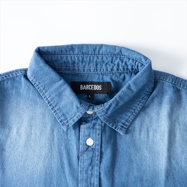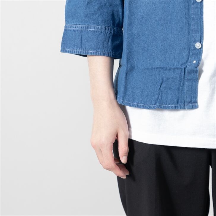 ベーシックデザインの6.5oz 7分袖 デニムシャツ。