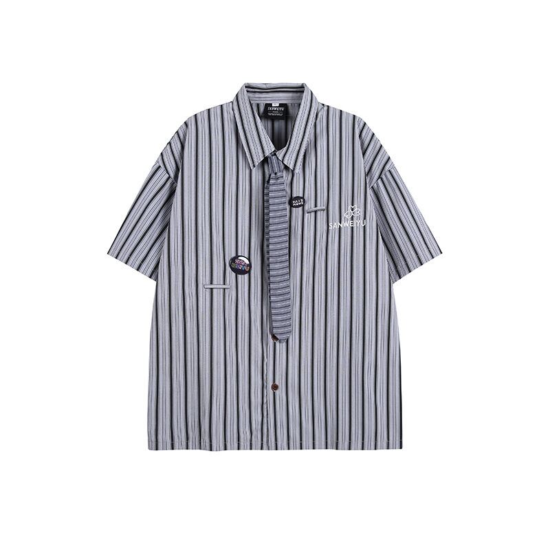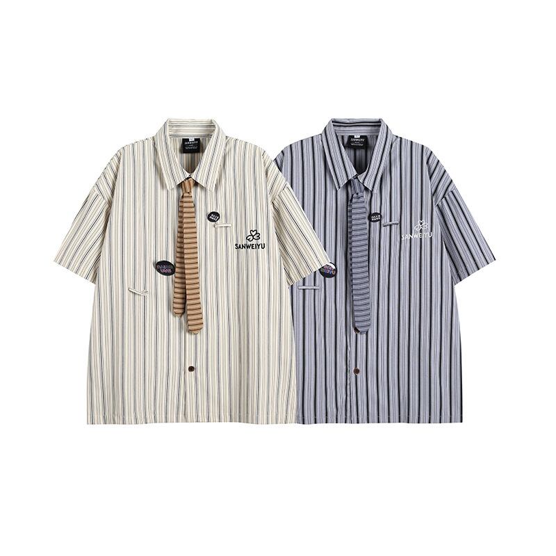 半袖 ヴィンテージ 韓国風 ワイシャツ ストライプ カジュアル