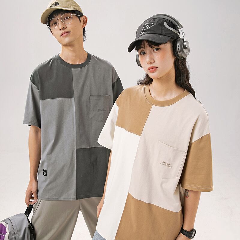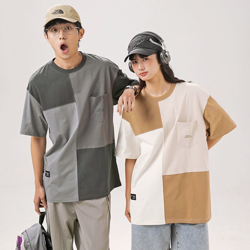 半袖 Tシャツ 男女通用 2024春夏新作 ラウンドネック カラーマッチング