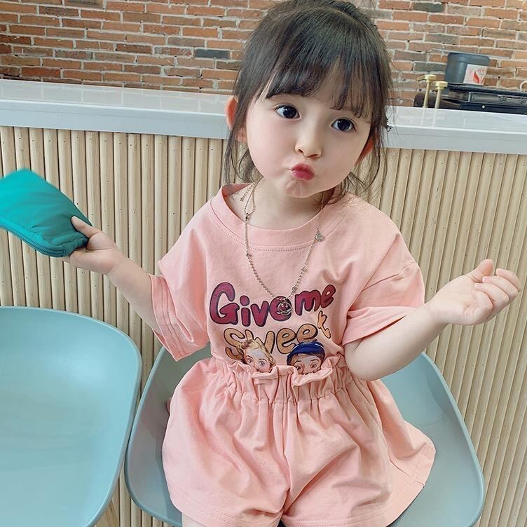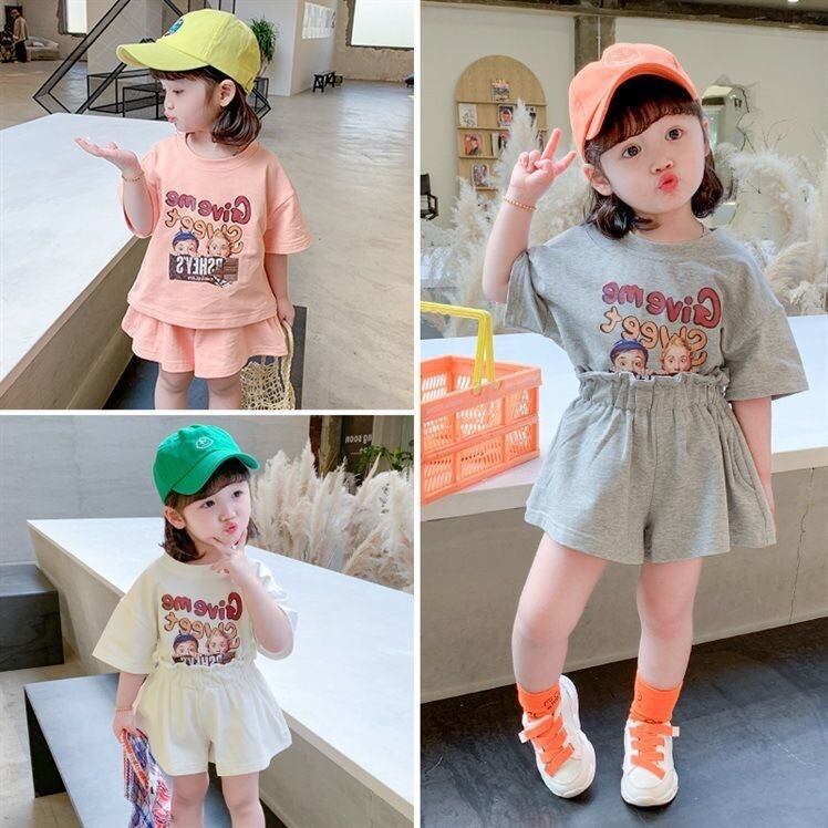 日本倉庫即納※即日発送」キッズセットアップTシャツ キュロットパンツ 80-130cm 女の子夏物