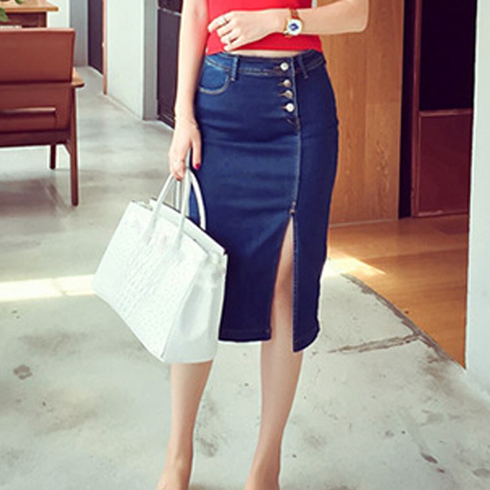 美脚脚長 春夏秋冬/ペンシルスカート秋/お洒落見え デニム