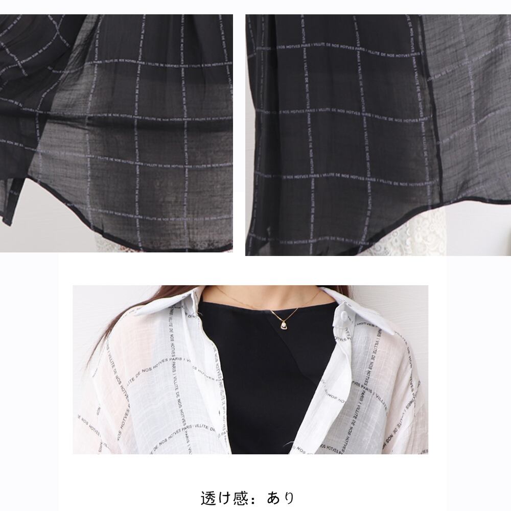体型カバーシャツ 夏おしゃれ 英字柄 薄手 カーディガン