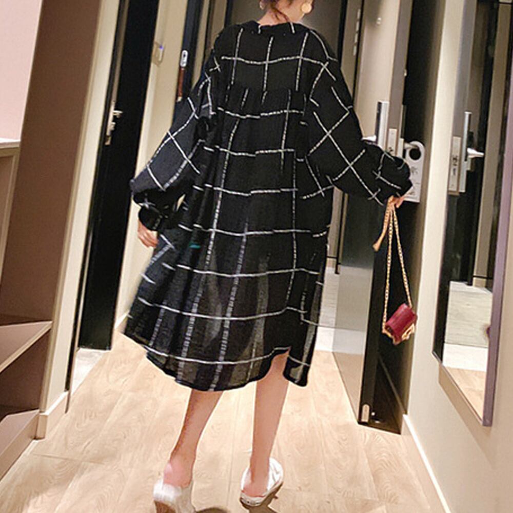 ロング カーディガン チェック柄シャツ