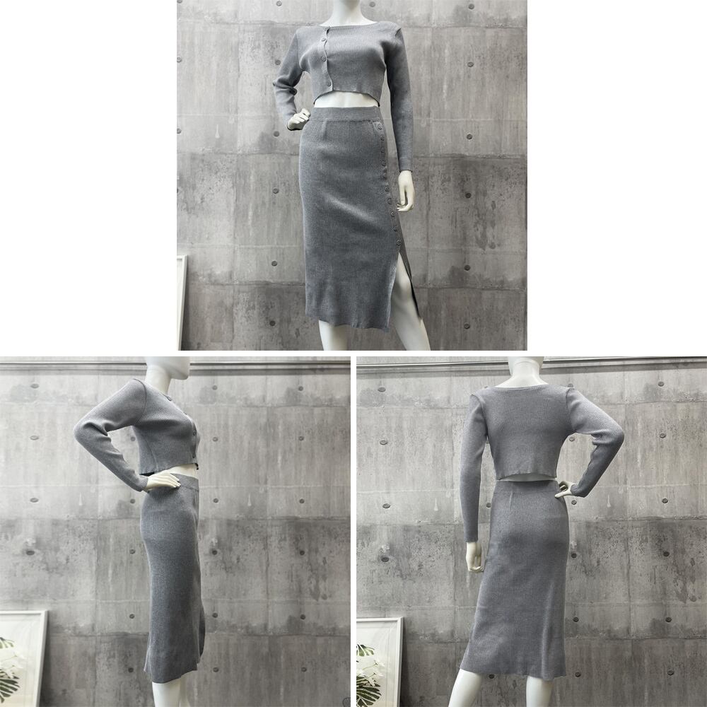 ショート丈トップス+ボタン開きスリット入りタイトスカートの2点ニットセットが登場