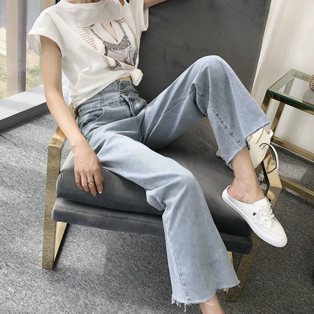 切りっぱなし デニムパンツ レディース 春夏薄手 ストレートジーパン カジュアル ロングパンツ 脚長ジーンズ 体型カバー